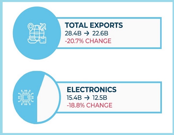 The electronics sector, which accounts for over half of the country’s total merchandise exports, experienced a steep 18.8% decline in export value from January to May this year primarily due to the Covid-19 pandemic.