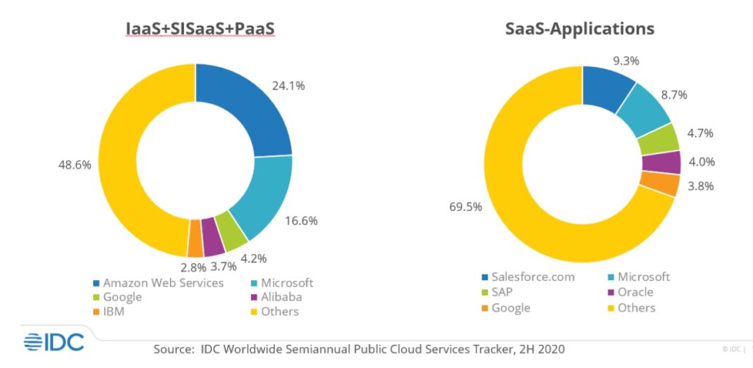 The worldwide public cloud services market, including Infrastructure as a Service (IaaS), System Infrastructure Software as a Service (SISaaS), Platform as a Service (PaaS), and Software as a Service (SaaS), grew 24.1% year over year in 2020 with revenues totaling $312 billion, according to analyst firm IDC.