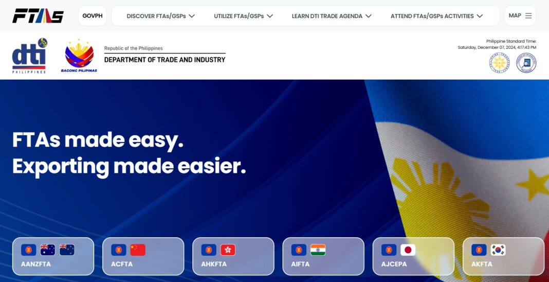 He added that the portal has four main sections: discovering FTAs/GSPs and their benefits, reducing tariffs, expanding market reach, and information on FTA/GSP-related activities and DTI’s trade agenda.