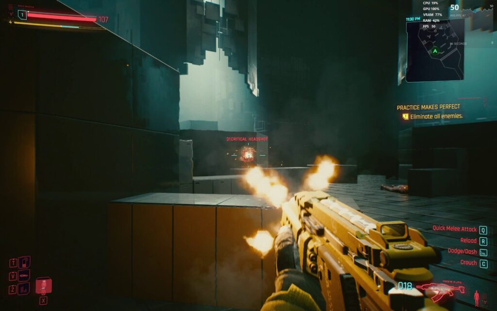 The “Cyberpunk 2077” benchmark function delivered an average of 23.27 FPS at “Overdrive” settings, performing better at a “Medium” setting with 37.55 FPS, with clear graphics and responsive control.