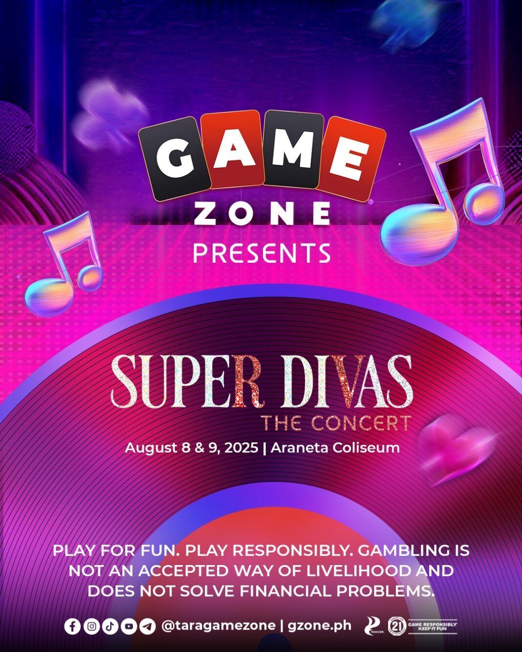 Be sure to stay updated by visiting gzone.ph now for free tickets, and join us in the Super Diva celebration by using the official hashtags: #GandaNgGameZone #SuperDivasTheConcert #TaraNaSaGameZone #GamezonePH.