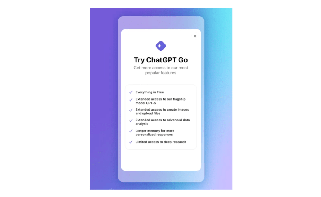 Powered by GPT-5, OpenAI’s most advanced model, ChatGPT Go offers users enhanced features such as higher message limits, image generation, file uploads, and extended memory — capabilities previously available only to higher-tier subscribers.