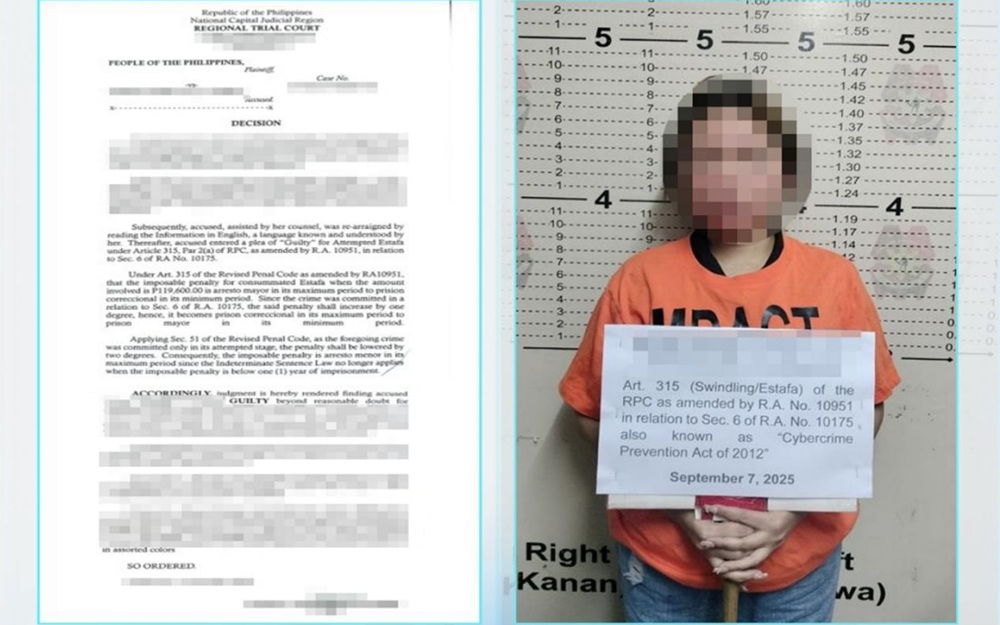 In an order dated Nov. 17, 2025, the court found her guilty of violating Article 315 of the Revised Penal Code, in relation to Section 6 of the Cybercrime Prevention Act of 2012 (RA 10175). She was sentenced to 30 days of imprisonment, equivalent to arresto menor.