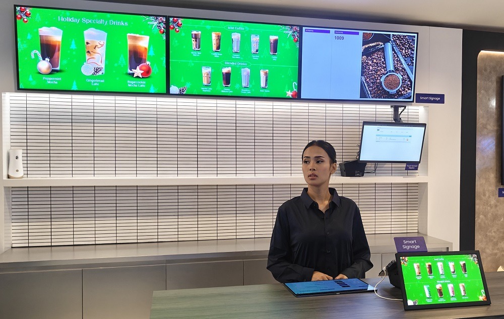 - Retail and restaurants: Digital display solutions and Samsung Kiosk enable fast ordering and menu updates through the VXT content management system.