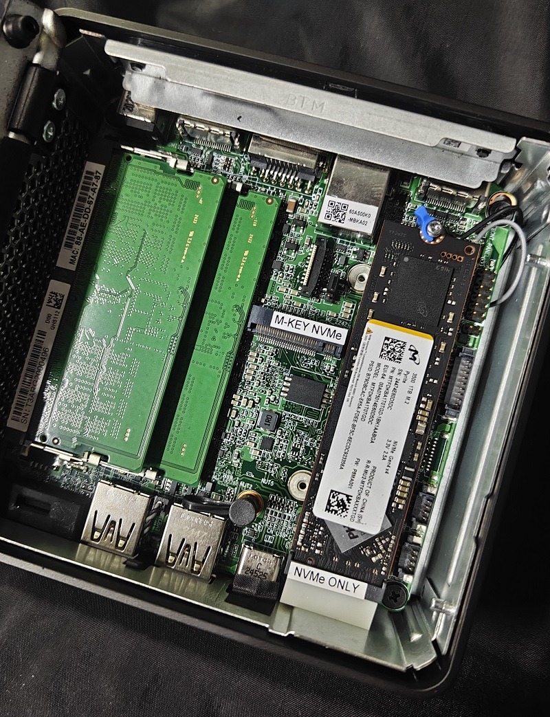 The NUC15CRH model is equipped with 16GB of RAM and 1TB of SSD storage. A unique feature of this model is its removable bottom panel, allowing for easy addition of accessories such as extra ports, RAM, and SSD storage.