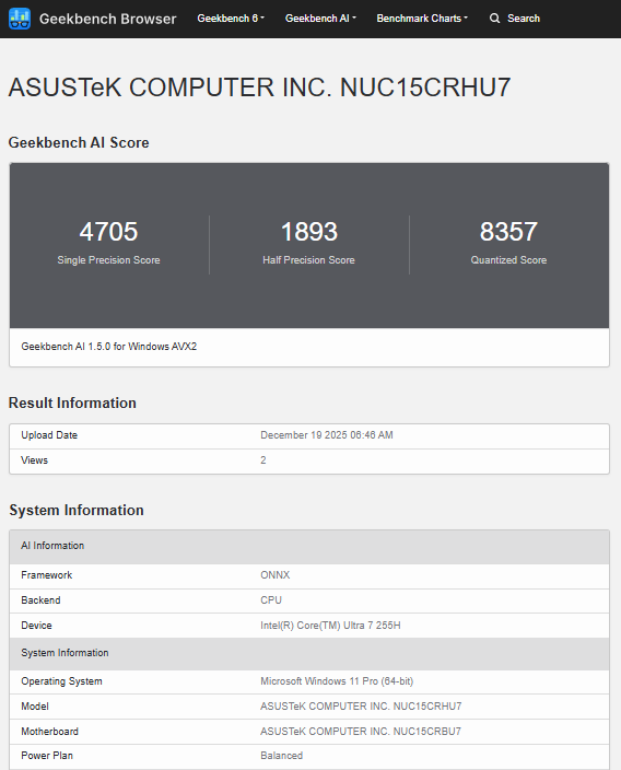 The AI capabilities of the NUC 15 Pro is specifically tailored for commercial use. It excels in artificial intelligence processing, leveraging Intel’s proprietary AI Boost to achieve a remarkable quantized score of 8,357 on Geekbench AI, with up to 77 TOPS of computing performance. This makes it an outstanding choice for AI-driven applications in business and industrial environments.