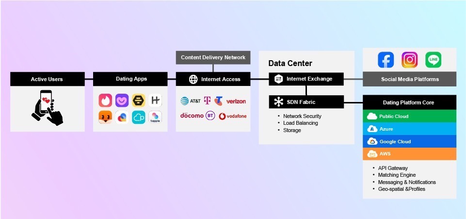 And of course, no dating app would be possible without cloud providers. Most of these apps take advantage of flexible, scalable cloud infrastructure to host their dating platform core, which includes the APIs, algorithms and messaging services that make matching possible.