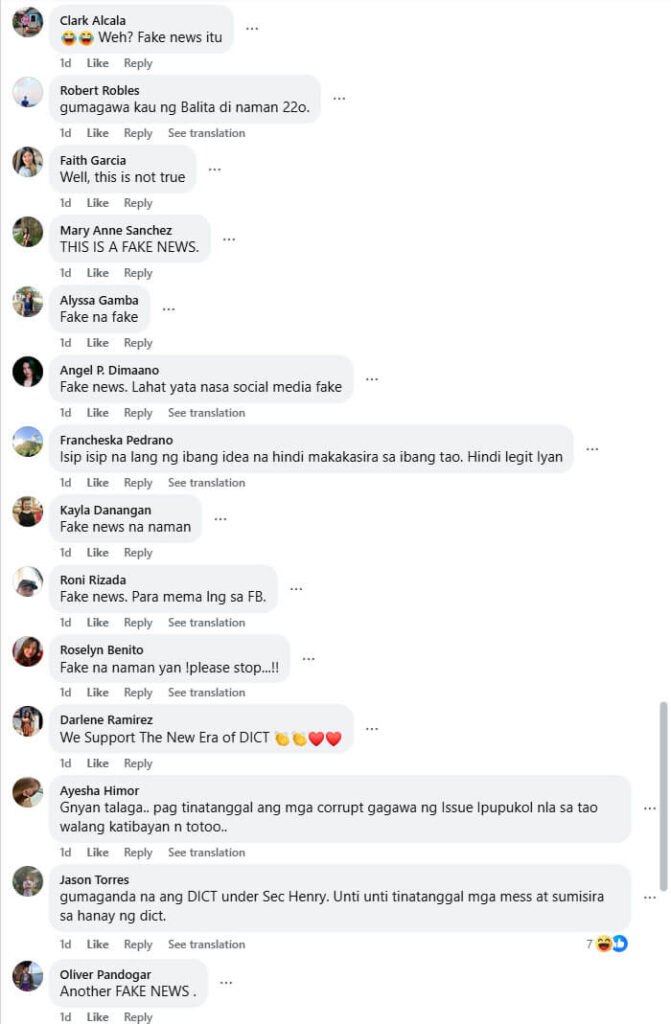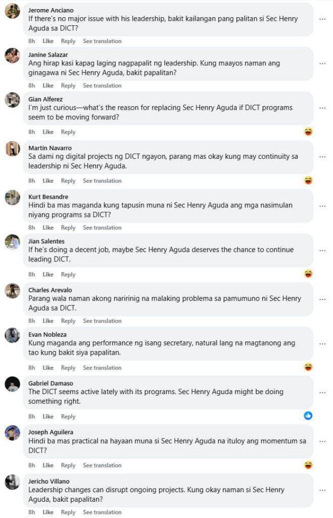 A Facebook post by online news site Bilyonaryo discussing a possible leadership change at the Department of Information and Communications Technology (DICT) was quickly swarmed by suspected troll accounts posting coordinated comments defending DICT secretary Henry Aguda.
