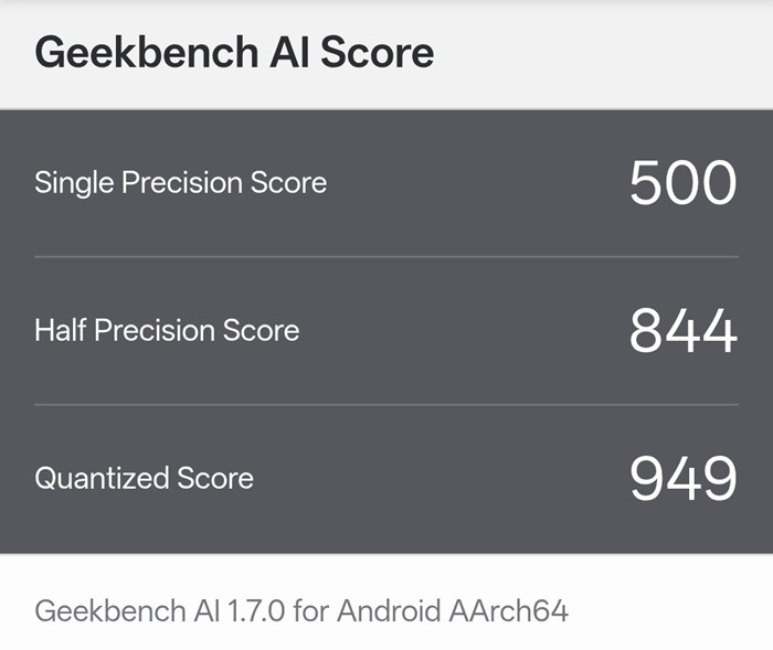However, the chipset’s AI score of 949 suggests that it may show some sluggishness during more intensive processing tasks.