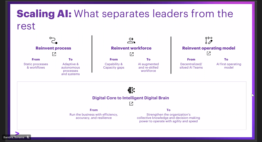 Accenture also emphasized the need for an “intelligent digital core” — integrating data, systems, and decision-making — to support large-scale AI deployments.